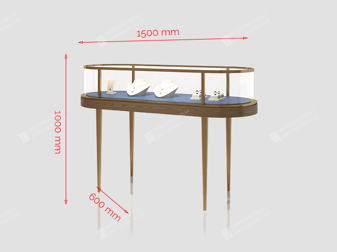 Elegant Oval Glass Showcase For Jewelry Retail Shop Luxurious Jewelry Display Cabinet